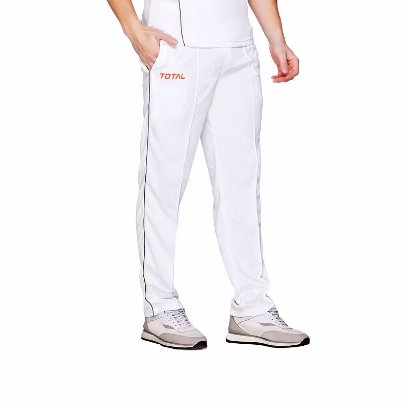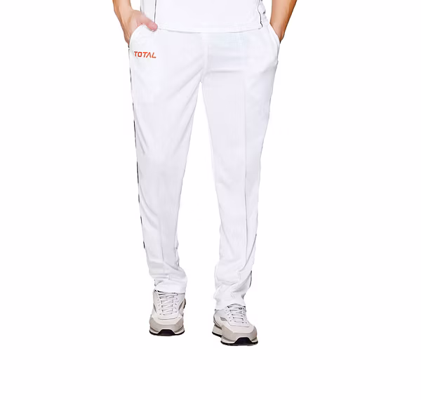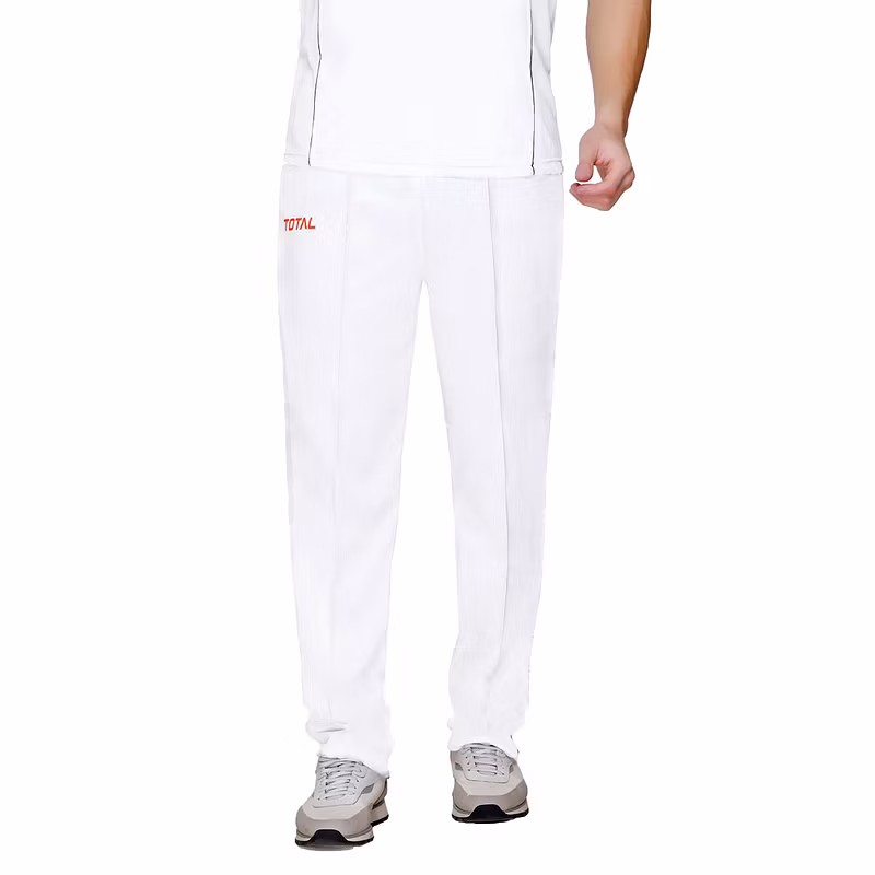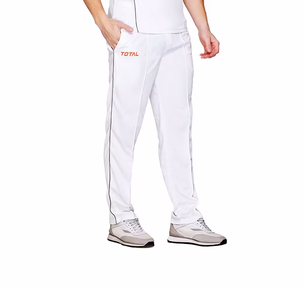 Elevate your game with the TOTAL Regular Fit Cricket Lower Pant for Men, crafted from high-quality polyester for unmatched comfort and durability. These cricket trousers are designed with a regular fit to provide optimal freedom of movement, making them ideal for both matches and practice sessions. The elastic waistband with a drawstring ensures a secure and adjustable fit, allowing you to focus on your performance without distractions. The classic white design offers a professional look, perfect for players of all levels, from beginners to advanced athletes. Lightweight and breathable, these cricket track pants keep you cool and comfortable even during the most intense matches. Versatile enough for cricket and other sports, the TOTAL Cricket Lower Pant is a must-have addition to your sportswear collection. Whether you're training, playing a match, or working out, these trousers provide the performance and style you need.