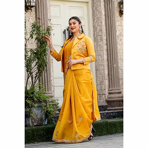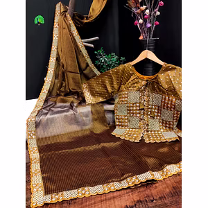 Introducing our Traditional Fancy Saree: a stunning combination of elegance and style. This saree is adorned with a beautiful sequence lace border and paired with a designer jacket style blouse, making it the perfect choice for any special occasion. The key feature of this saree lies in its intricate lace border, which adds a touch of glamour and sophistication. The delicate sequence embellishments further enhance its beauty, making it a truly eye-catching ensemble. But it's not just about the aesthetics. This saree offers a range of benefits that make it a must-have in your wardrobe. The jacket style blouse not only adds a contemporary twist to the traditional saree, but also provides a comfortable and flattering fit. The versatility of this design allows you to effortlessly transition from a formal event to a casual gathering, making it an ideal choice for any occasion. What sets our Traditional Fancy Saree apart is its unique selling points. The combination of the lace border and jacket style blouse creates a fusion look that is both timeless and on-trend. This saree allows you to make a bold fashion statement, while still embracing the rich cultural heritage of traditional attire. With our Traditional Fancy Saree, you can exude confidence and grace wherever you go. Its exquisite design and impeccable craftsmanship guarantee that you will stand out from the crowd. Whether you're attending a wedding, a festival, or a social gathering, this saree will make you the center of attention. Don't miss out on this opportunity to own a piece of art that celebrates the beauty of tradition and the allure of contemporary fashion. Elevate your style with our Traditional Fancy Saree and be prepared to turn heads wherever you go.
