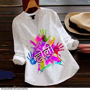 Made with premium natural crepe fabric, this top offers comfort and poise, ideal for celebrations. The soft texture drapes gracefully, embodying timeless grace and elegance.