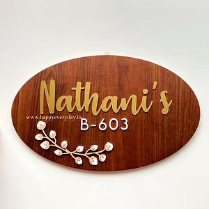 Tulip Flower Nameplate on Walnut Wood - with a touch of golden and white. Statement pieces to amp up your room. This sign is designed, cut and made to order. Thickness of the plaque will vary from 6-8mm and is made out of natural veneer and mdf. Fixtures will be sent along the order.