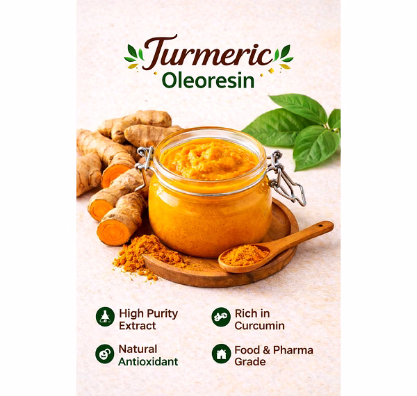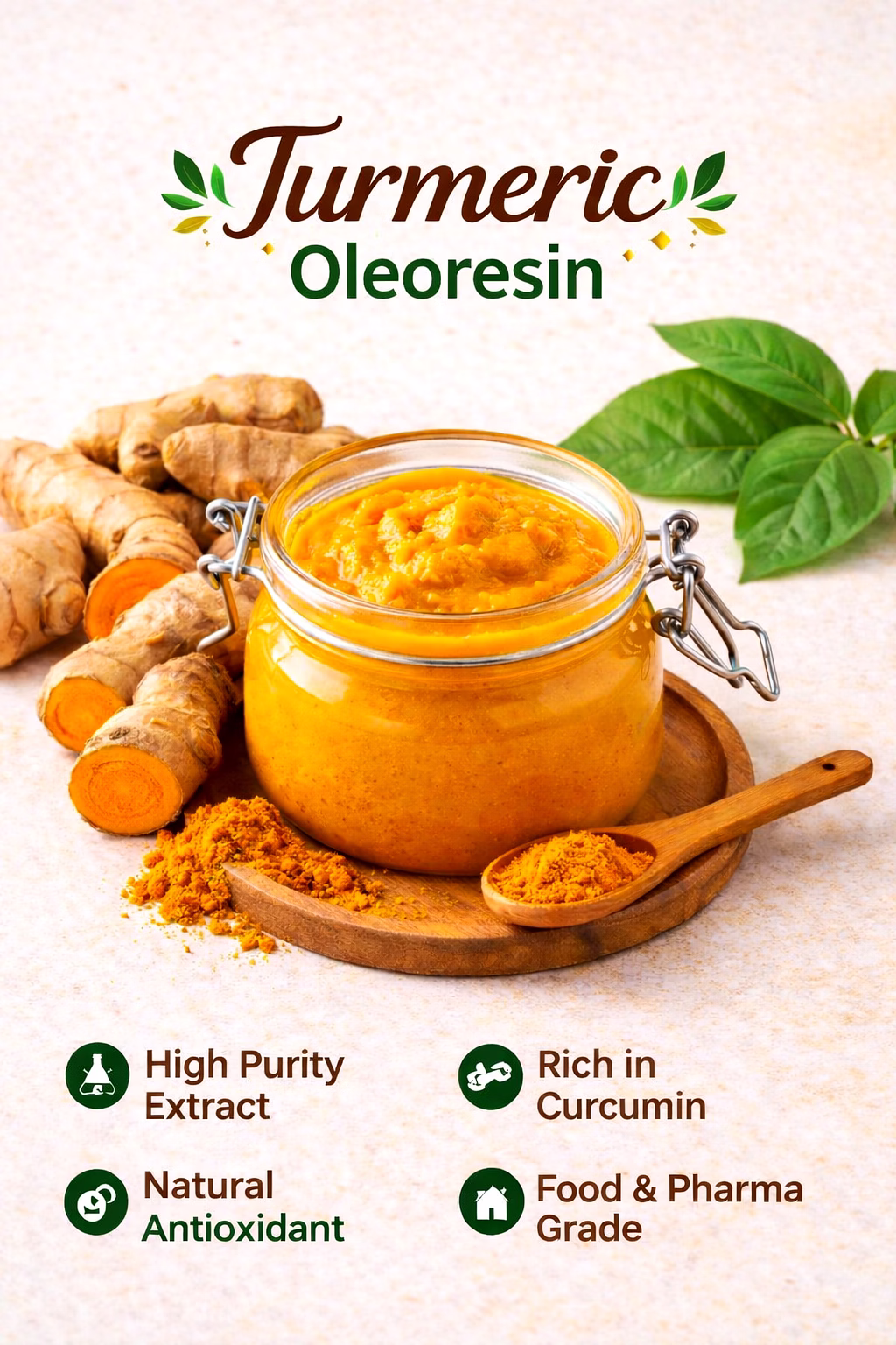 Turmeric Oleoresin is produced from carefully selected turmeric rhizomes using controlled solvent extraction, yielding a concentrated extract containing curcuminoids along with the natural flavour and colour components of turmeric. Supplied as a viscous, yellow-orange to brownish paste, the oleoresin provides consistent colour strength and functional performance compared to raw turmeric powder. It is widely used as a natural colouring and flavouring ingredient in food processing, nutraceutical formulations, and selected pharmaceutical applications where uniformity, stability, and controlled dosing are essential.