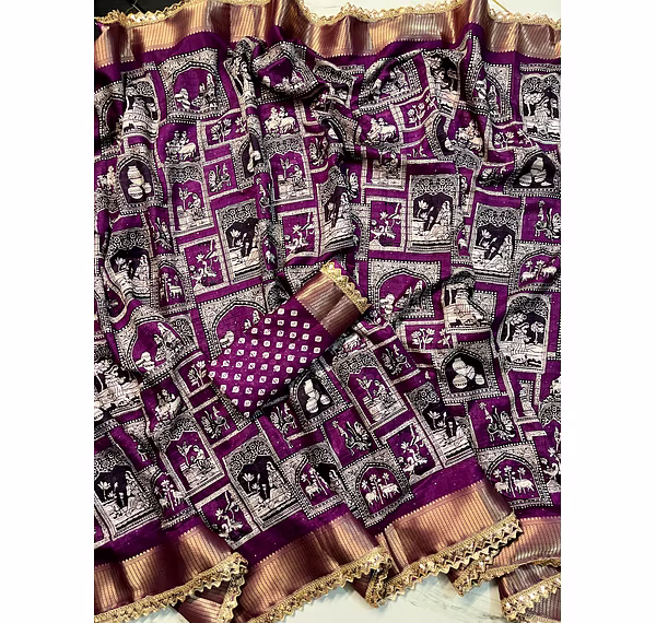 Introducing the latest sensation in ethnic wear - the New Trending Lace Patti Super Hit Lehriya Design Saree! Made from premium quality Super Tushar silk, this saree is the perfect balance of elegance and comfort. The exquisite lehriya design, with its vibrant and eye-catching hues, is sure to make you stand out in any crowd. But that's not all - the real star of the show is the super hit lace work border, which adds a touch of glamour and sophistication to this already stunning saree. The intricate lace work is not only visually appealing but also adds durability to the saree, making it a long-lasting addition to your wardrobe. The saree comes in a total of one color, making it the perfect choice for any occasion - be it a wedding, a festival, or a formal event. The running blouse that comes with the saree ensures a perfect fit for all body types. Don't miss out on the opportunity to turn heads with this one-of-a-kind saree. Perfect for anyone who wants to make a statement without sacrificing comfort, the New Trending Lace Patti Super Hit Lehriya Design Saree is a must-have addition to any ethnic wear collection. Order yours today and experience the unbeatable combination of style, comfort, and durability!