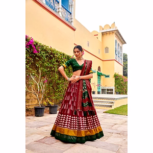 This stunning Lehenga set will leave you feeling like a queen. Crafted from luxurious Tussar Silk, the Lehenga features intricate floral and Patola print with foil work, making it the perfect statement piece for any special occasion. The Lehenga waist is supported up to 42 and is complete with a drawstring and heavy tassels for easy wear. The canvas stitching and Can Can attachment ensure that the Lehenga falls in a graceful manner, complete with 3.80 meters of flair and a length of 42 inches. The accompanying blouse is made from Tussar Silk and features a beautiful Patola print with foil work, adding to the overall elegance of the ensemble. The blouse is unstitched, providing the perfect opportunity to customize and tailor it to your unique style. It measures 0.80 meters in length. To complete the look, this Lehenga set comes with a matching Tussar Silk dupatta, complete with printed foil work and a length of 2.5 meters. The entire package weighs 1.250 KG, making it lightweight and comfortable to wear. This Lehenga set is the perfect combination of traditional and modern style, with unique prints and luxurious fabrics that will catch the eye of anyone in the room. Suitable for weddings, parties, and religious ceremonies, this outfit is sure to leave a lasting impression. You will feel confident and beautiful in this stunning Lehenga set, so why wait? Add it to your wardrobe today!