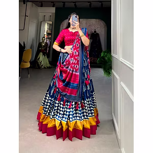 Introducing our Tussar Silk Lehenga Set with Leheriya Print Border, a lightweight and stylish ensemble that will effortlessly elevate your ethnic wardrobe. Crafted with utmost care, this exquisite lehenga set is designed to make you stand out on any special occasion. Made from premium quality tussar silk, this lehenga set offers a luxurious feel against your skin. The lightweight fabric ensures maximum comfort, allowing you to dance the night away without any restrictions. The leheriya print border adds a touch of traditional charm, making it perfect for both formal events and festive celebrations. With its impeccable craftsmanship and attention to detail, this lehenga set showcases the finest of Indian textile artistry. The intricate embroidery work on the blouse and lehenga enhances its overall elegance, making it a true piece of art. The vibrant colors and intricate patterns are bound to turn heads wherever you go. But this lehenga set is not just about its stunning appearance. It also offers practicality and versatility. The blouse is designed with a modern silhouette, allowing you to pair it with other outfits for a contemporary twist. The lehenga can be easily draped in different styles, giving you the freedom to experiment and create your own unique look. Whether you're attending a wedding, a traditional function, or a festive gathering, our Tussar Silk Lehenga Set with Leheriya Print Border is the perfect choice. It effortlessly combines traditional aesthetics with modern sensibilities, making it a timeless addition to your ethnic collection. Elevate your style and make a lasting impression with this lightweight, stylish, and ethereal lehenga set. Embrace the beauty of Indian craftsmanship and experience the luxury of tussar silk. Own a piece of art that will make you feel like a queen and create memories that will last a lifetime.