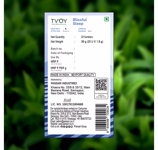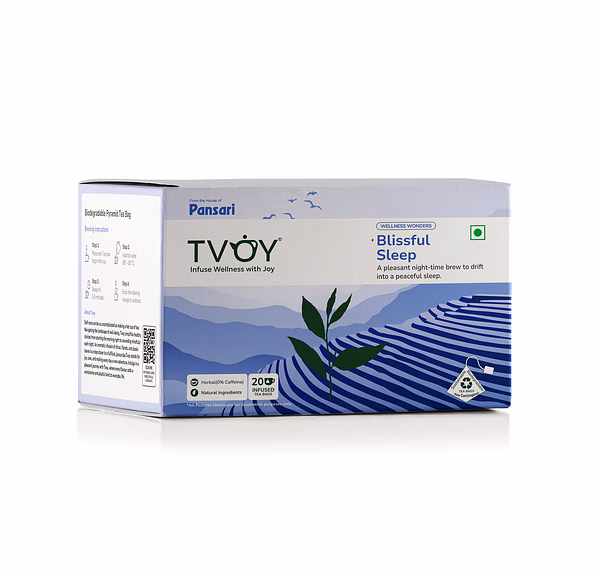 Calming Herbal Blend: Tvoy Blissful Sleep Tea is designed for relaxation and soothing experience.