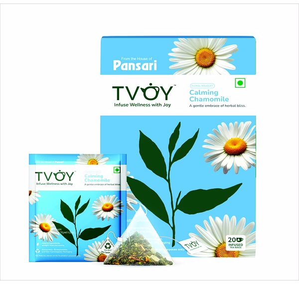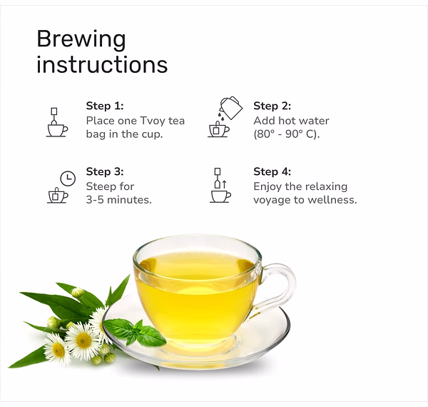 Calming Herbal Infusion: Tvoy Chamomile Tea is made from chamomile flowers for a soothing experience.