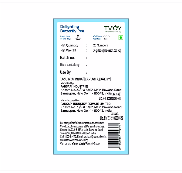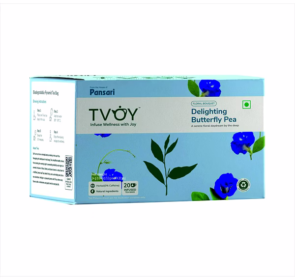 Indulge in the vibrant blue hues of Tvoy Delighting Butterfly Pea Tea. Experience a caffeine-free herbal tea option with a mild and refreshing taste.