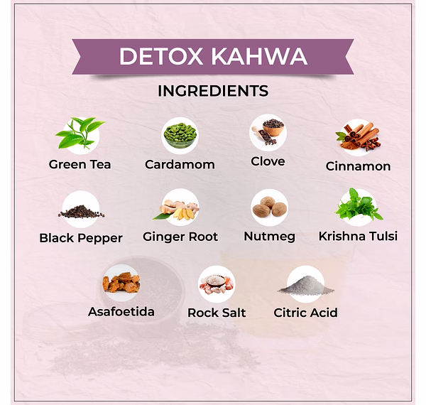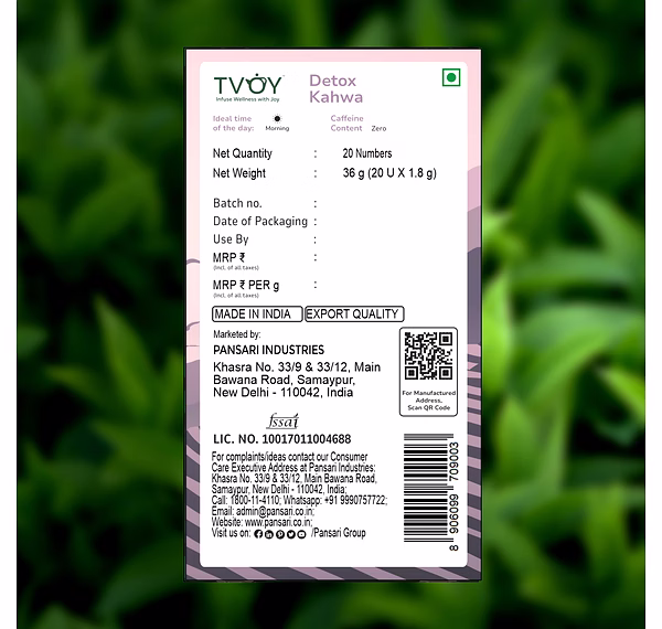 Traditional Kahwa Blend: Tvoy Detox Kahwa combines green tea with aromatic spices for a rich taste.
