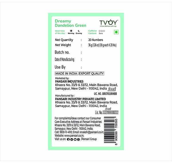 Tvoy Dreamy Dandelion Green Tea is a testament to quality and taste. Sourced from the finest ingredients and expertly blended, each sip offers a symphony of flavors that are both soothing and revitalizing. Elevate your tea-drinking experience with this impeccably crafted infusion.