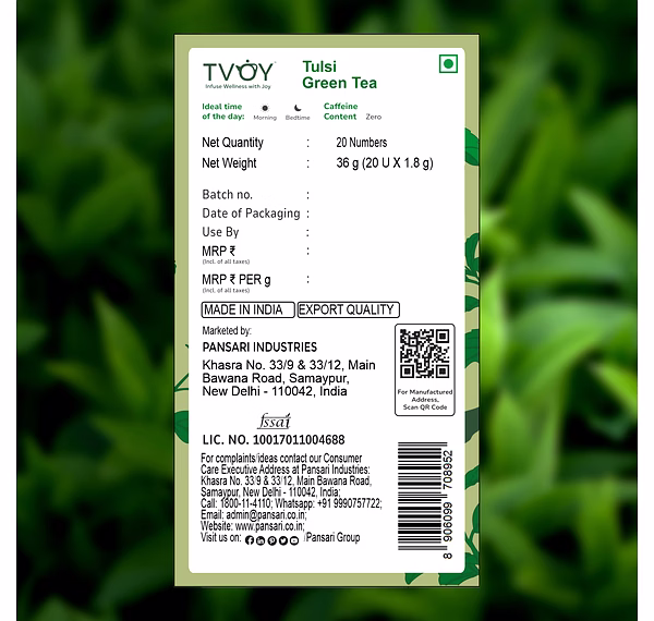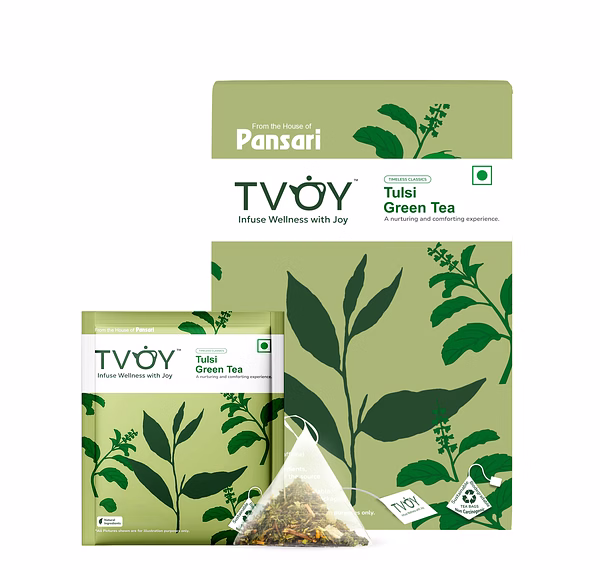 Herbal Tulsi Blend: Tvoy Tulsi Green Tea combines green tea with tulsi for a refreshing taste.