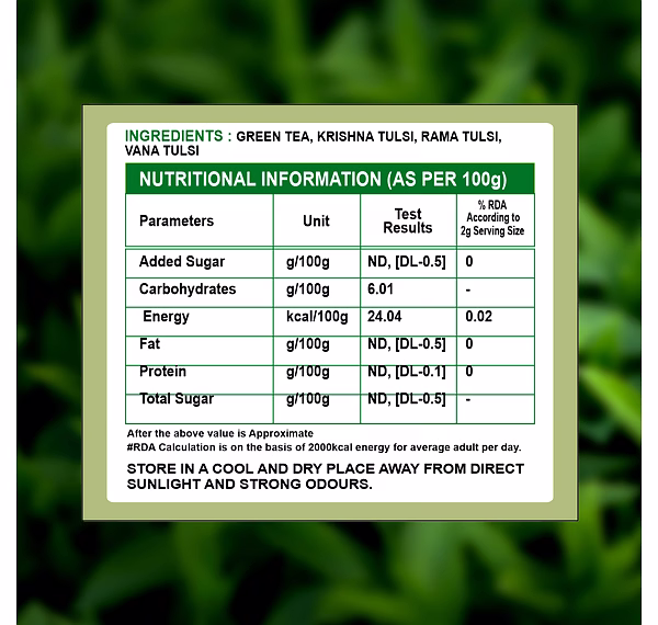 This tea offers a balanced flavor with natural herbal notes, making it ideal for daily consumption. Tulsi is widely used in herbal beverages for its refreshing qualities. The tea bags ensure easy preparation, while hygienic packaging preserves freshness and consistent quality.