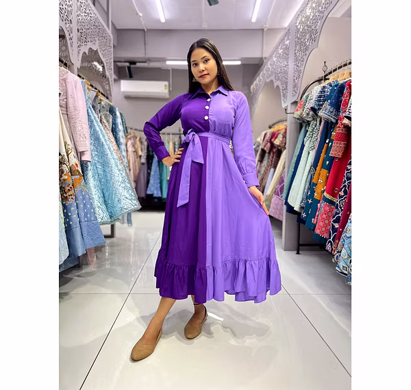 *Gown Fabric* : Heavy malai Crepe *Gown inner* : Heavy malai Crepe *Gown Colour* : Rani / Pink + Purple / Light Purple *Gown Flair*: 3.50 MTR *Gown Length* : 50” *Sleeve Length*: 23” *Weight*: 450 GMNote:-“Color Variation May be Change Due To Light ,Camera And Mobile Screen Effect.”BE aware of some sellers using our shoot pictures and selling cheap quality Designed for international appeal, this top delivers both elegance and export-ready quality.