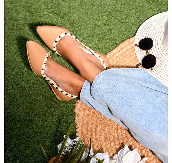 Walk into style with this beige pair of ballerinas by Sole House. Made from high quality faux leather, it features slip on closure and pointed toe design. Pair it with your favourite dress to elevate your look.