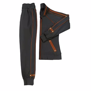 This comfortable coordinated set of jogger pants and biker jacket is comfortable and stylish. Vegan leather detailing completes the biker look.