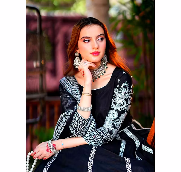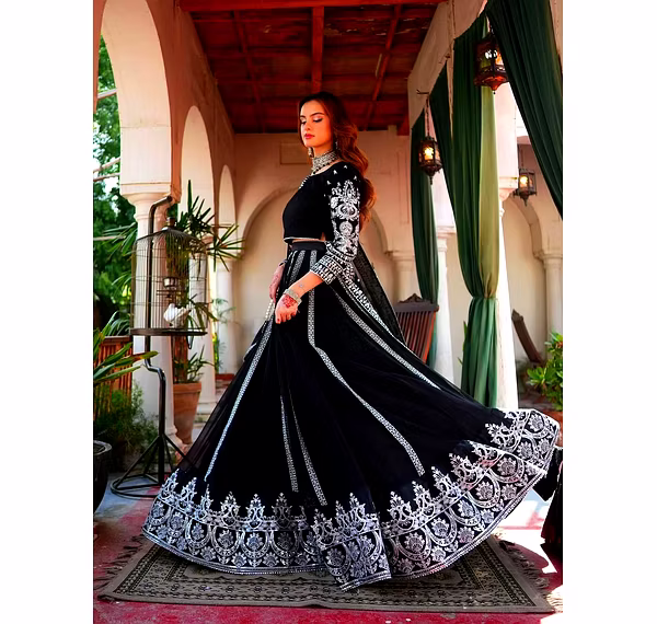 Indulge in opulence with our Velvet Lehenga Choli with Dupatta, a masterpiece crafted for grand occasions. The plush velvet fabric, adorned with intricate embroidery and a majestic flare, offers a dramatic yet sophisticated look that guarantees all eyes on you.