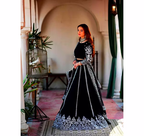 Embrace modern aristocracy wearing our Velvet Lehenga Choli with Dupatta. The fusion of traditional artistry and contemporary design in the choli creates a perfect harmony, elevating your style quotient with a touch of regal charm.