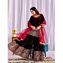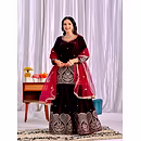Elevate your style with the Velvet Sharara Suit Design, a symbol of luxury and sophistication. This attire exudes magnificence with its intricate embroidery and rich velvet fabric, making you the focal point of any occasion.