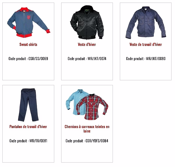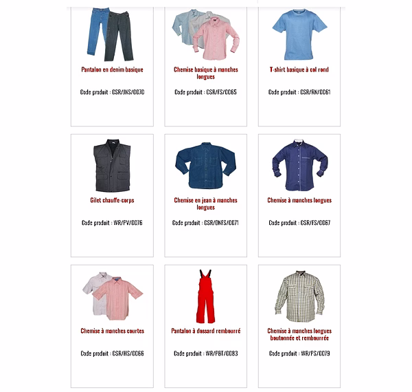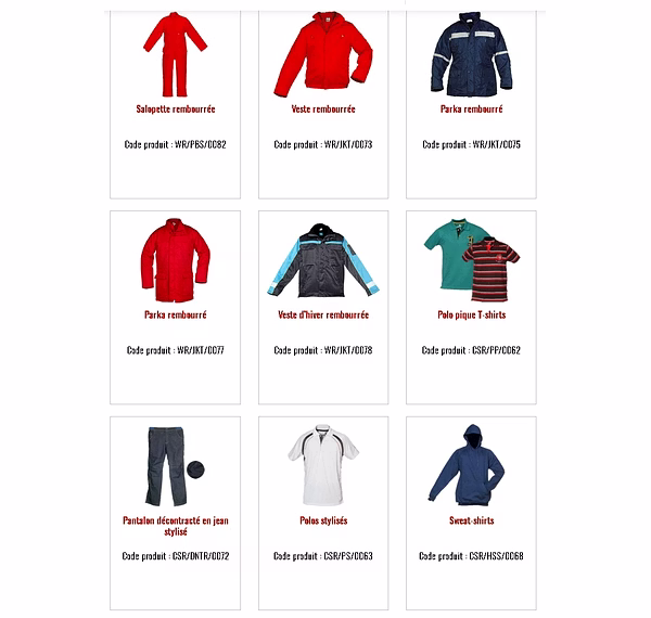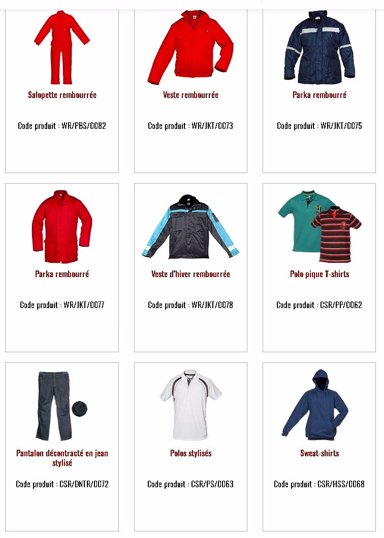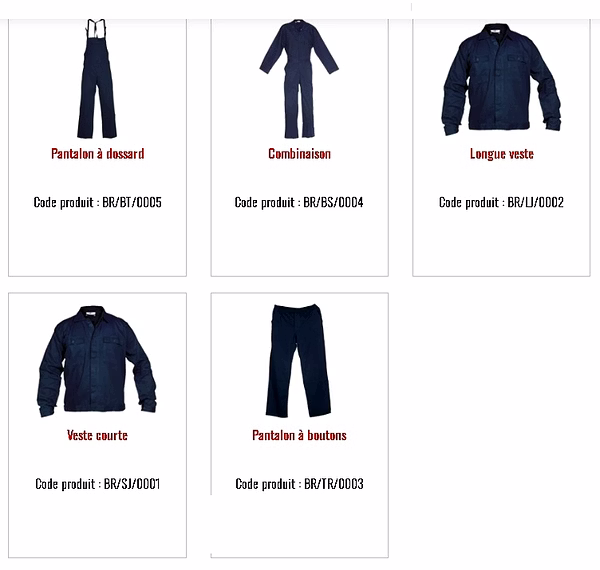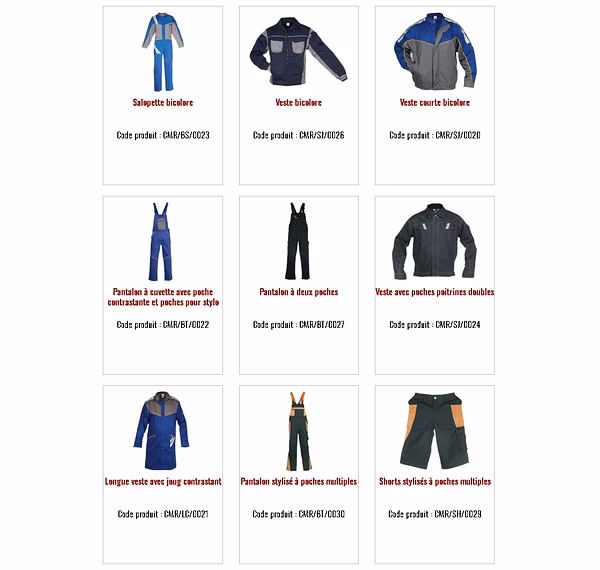 Vêtements de Travail et de Sécurité :