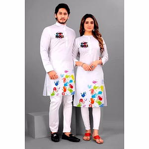 Enjoy the comfort of semi-cotton while looking trendy and chic in this Holi Top. Perfect for celebrating with friends and family, the breathable fabric ensures you stay cool while the vibrant prints make a bold fashion statement. Elevate your Holi look with this versatile and eye-catching piece.