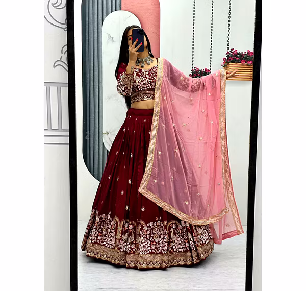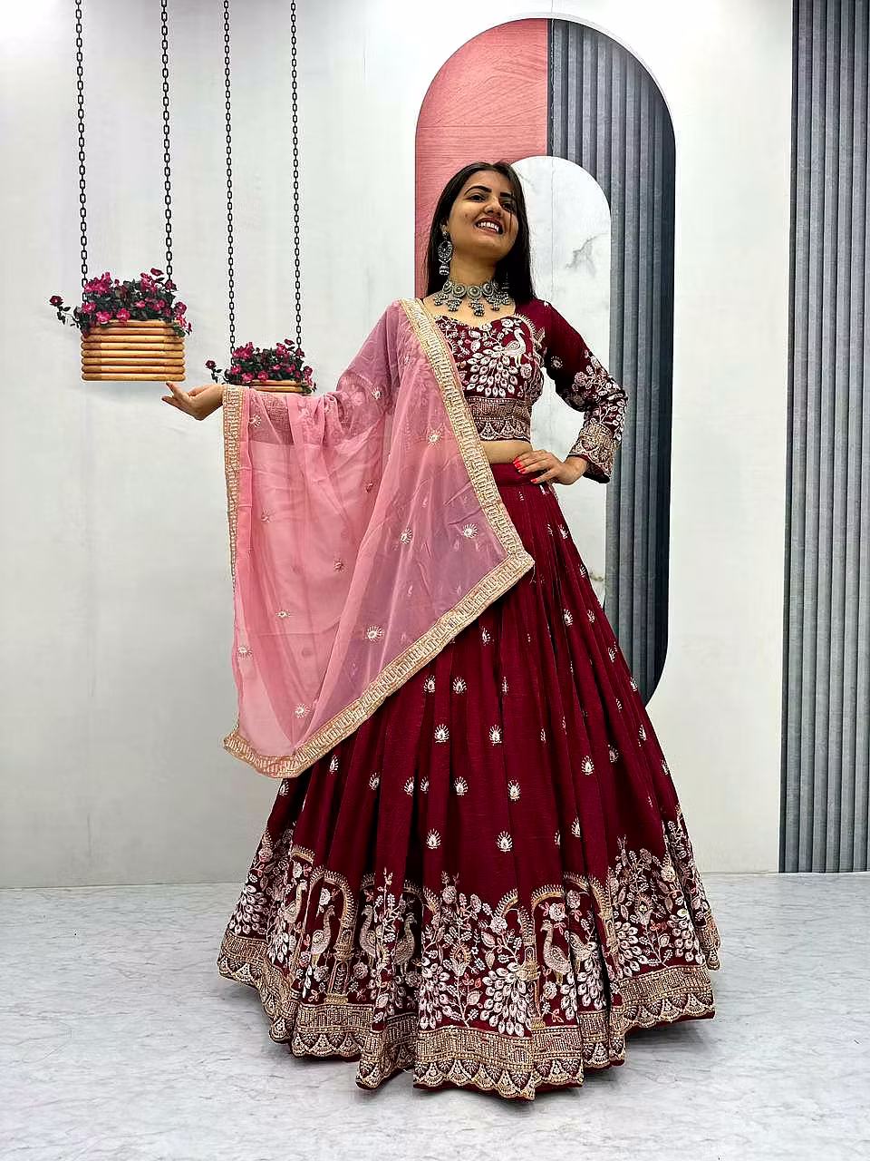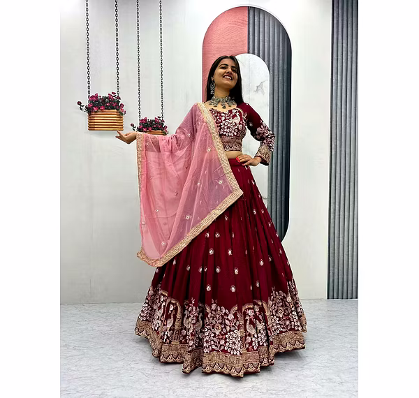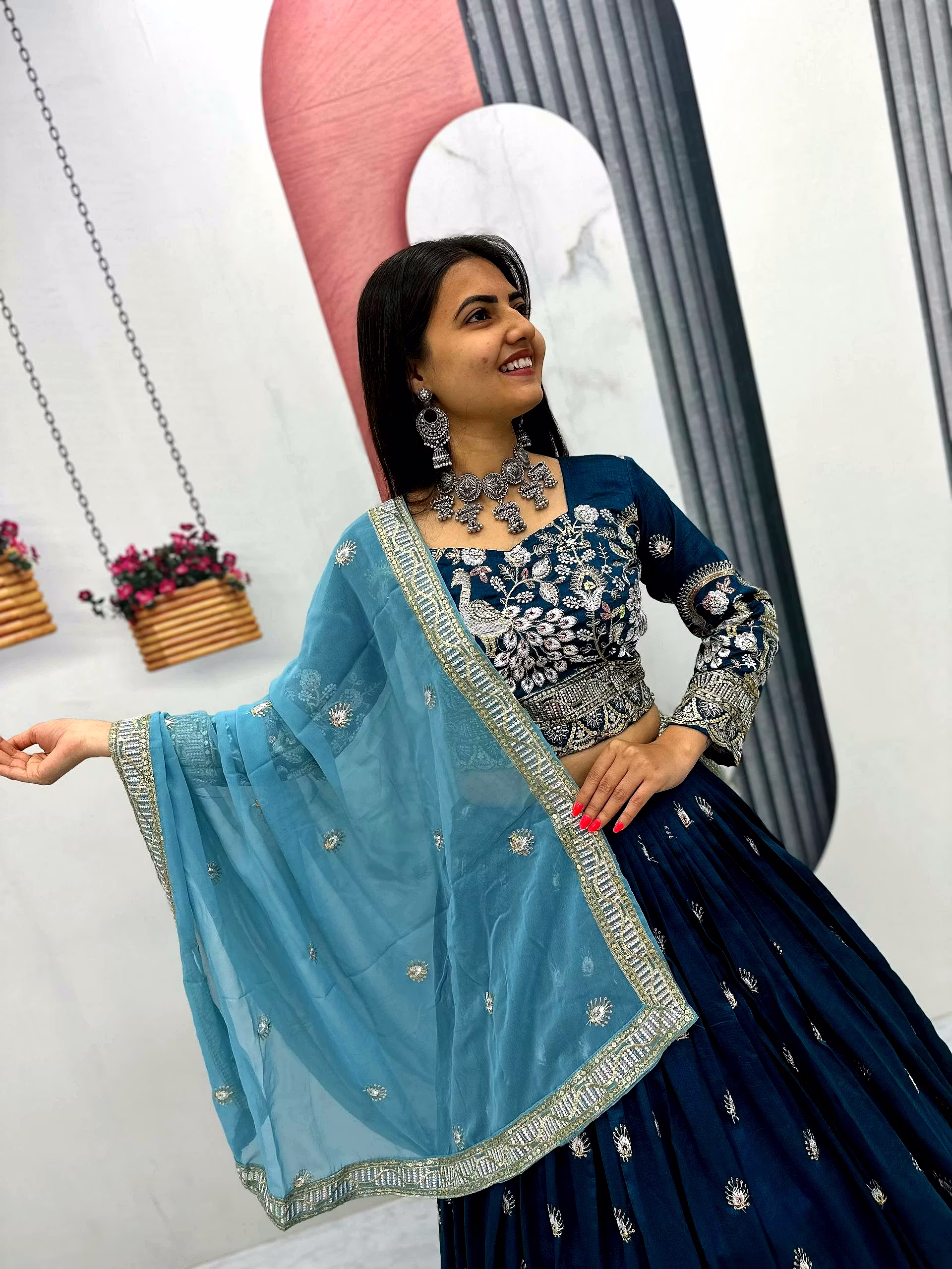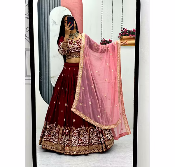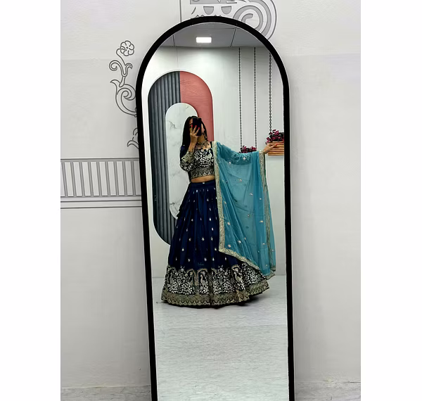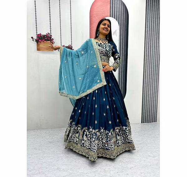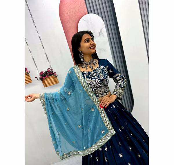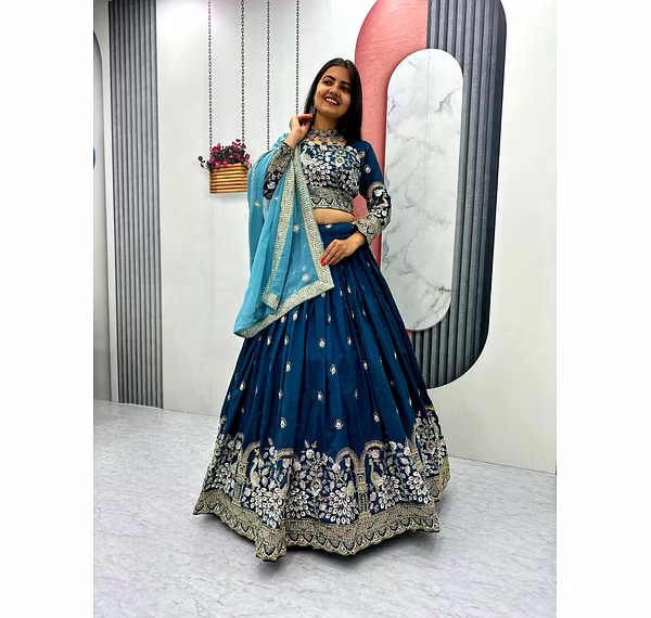 Indulge in luxury with the finest vichitra silk fabric that drapes beautifully, enhancing your silhouette. The lehenga blouse design is a blend of tradition and modern trends, reflecting your unique style.