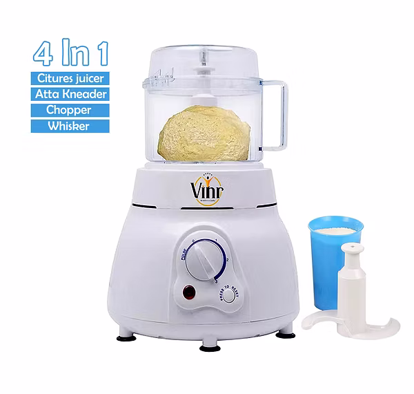 Vinr magic atta maker is a four In One Machine with which you can knead 1/2kg (approx) Atta in just 30 seconds. One can also make Numerous delicious shakes, do lots of vegetable chopping, Extract Butter. Now, anyone can extract seedless juice from citrus fruits with the help of new additional cirtus Juicer extractor.