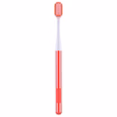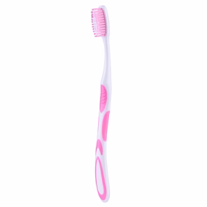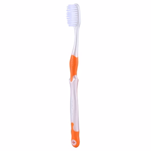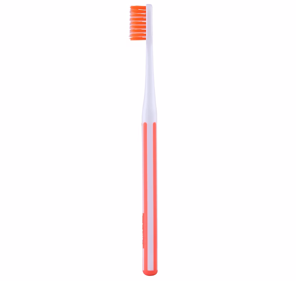 It usually features soft or medium nylon monofilament bristles that are rounded to protect enamel and gums.