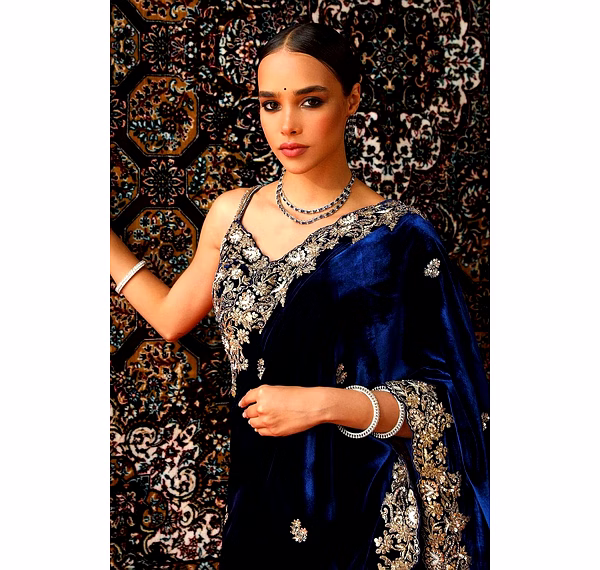 Unleash your inner fashionista with our Designer Velvet Saree. The plush fabric drapes beautifully, accentuating your silhouette while showcasing a perfect blend of traditional artistry and contemporary style.