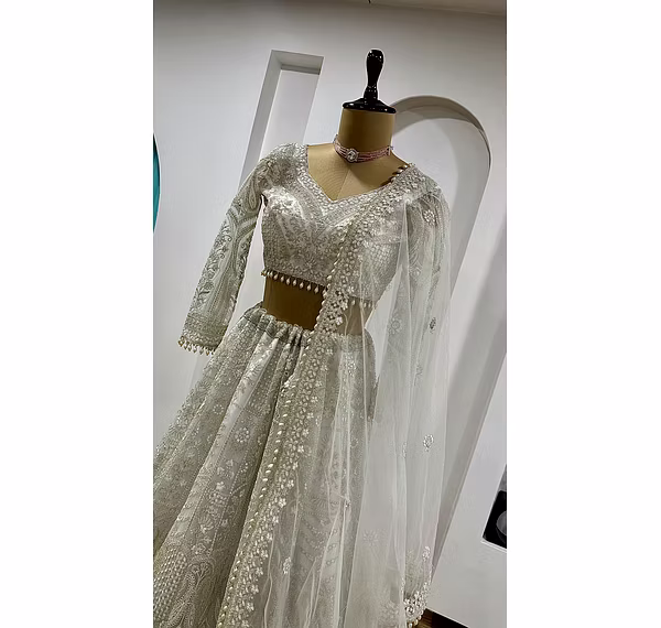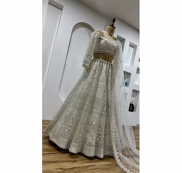⏭️ Net Lehenga with delicate sequins, dori & thread work