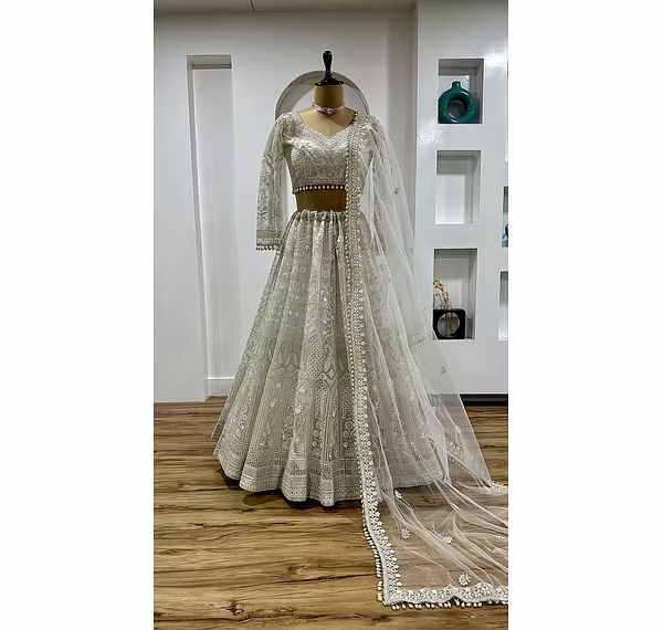 #VrajanaCreation #DesignerLehenga #BridalInspiration #IndianBride #LuxuryLehenga #EthnicElegance #NetLehenga #SequinsWork #ThreadWork #WeddingOutfit #BridalLook #IndianFashion #CustomStitching #ReadyToWear #WorldwideShipping #USA #UK #Australia #LuxuryEthnicWear #VrajanaStyle #ModernTradition #lehengagoals