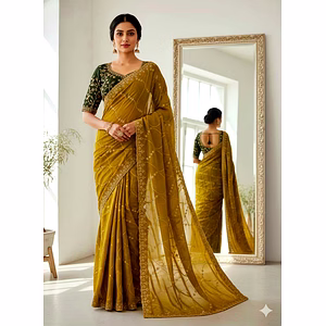 Adorn yourself in luxury with this Georgette Saree adorned with intricate thread work, adding a touch of glamour to your ensemble. The fine craftsmanship and attention to detail make it a standout piece.