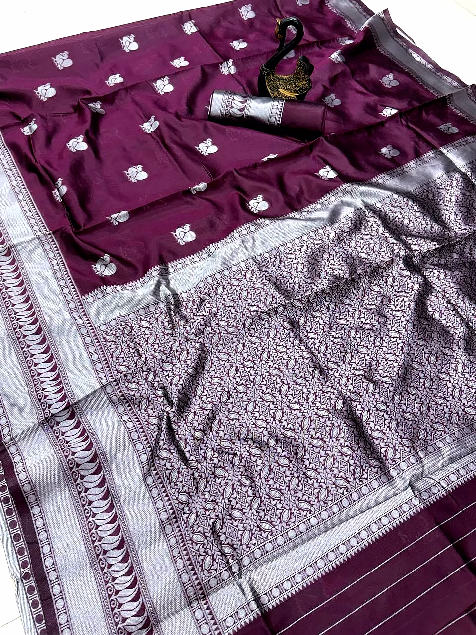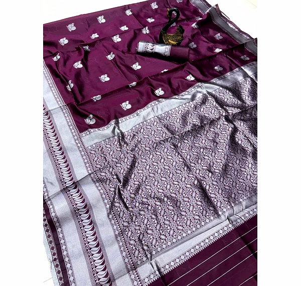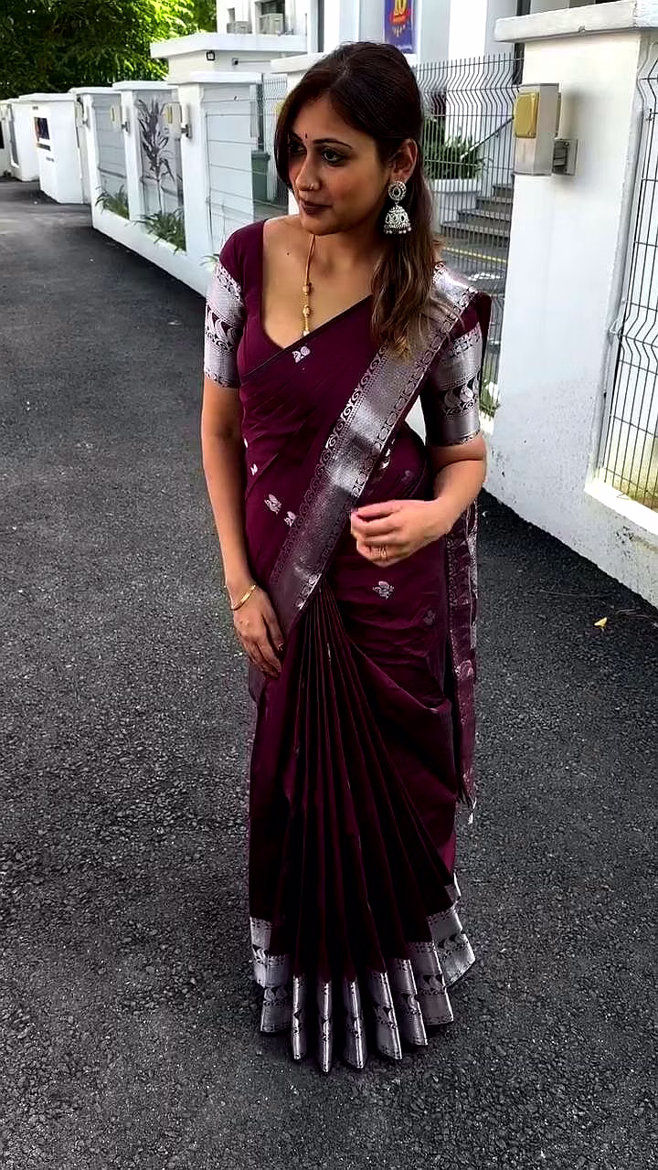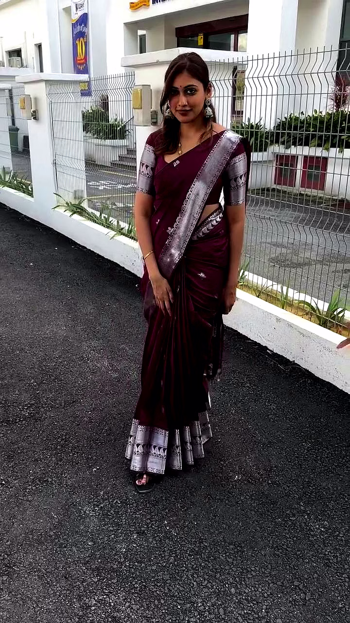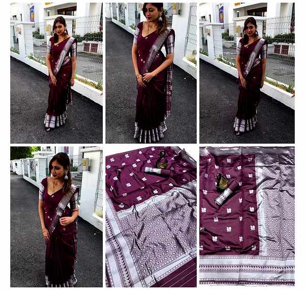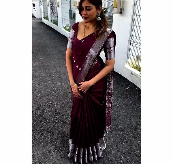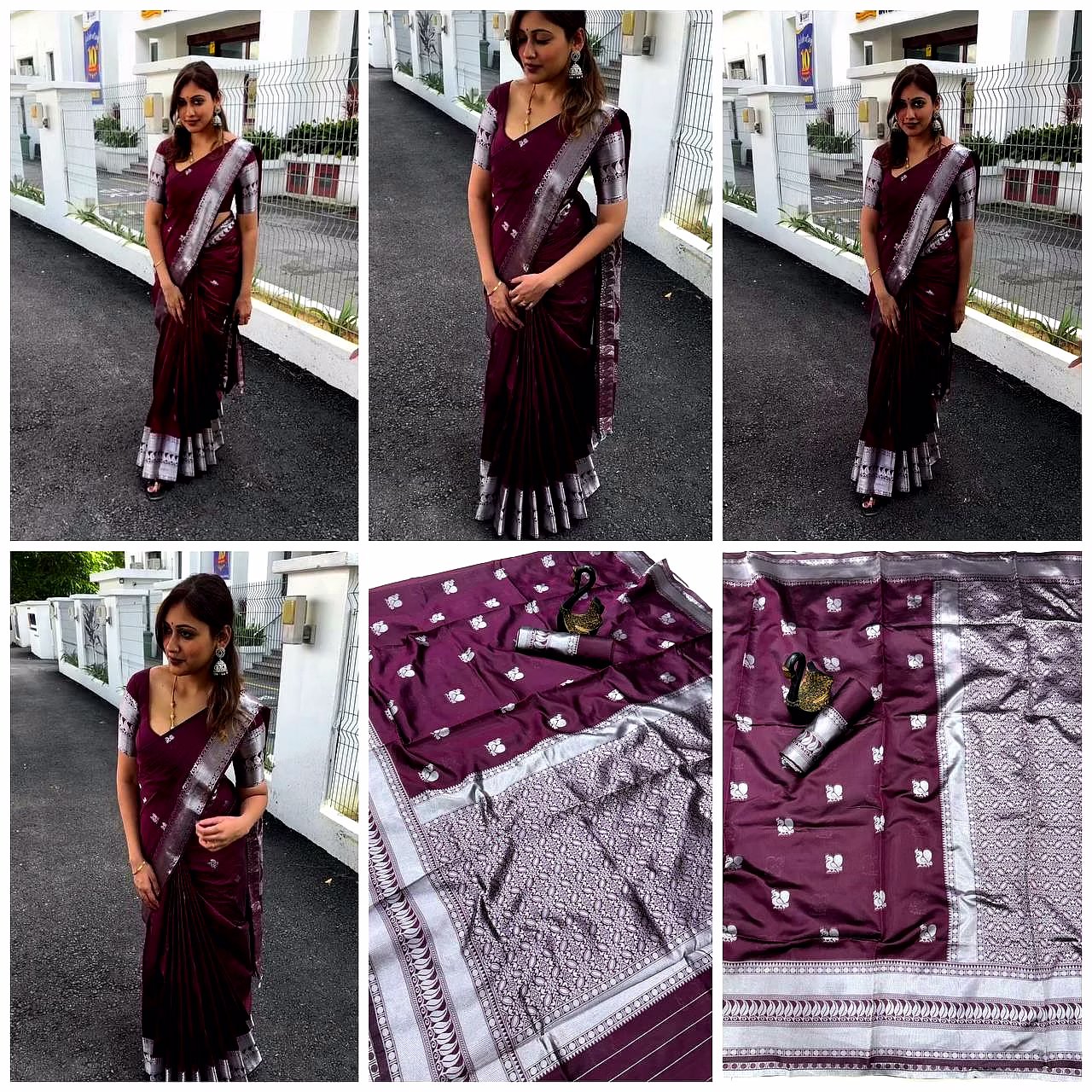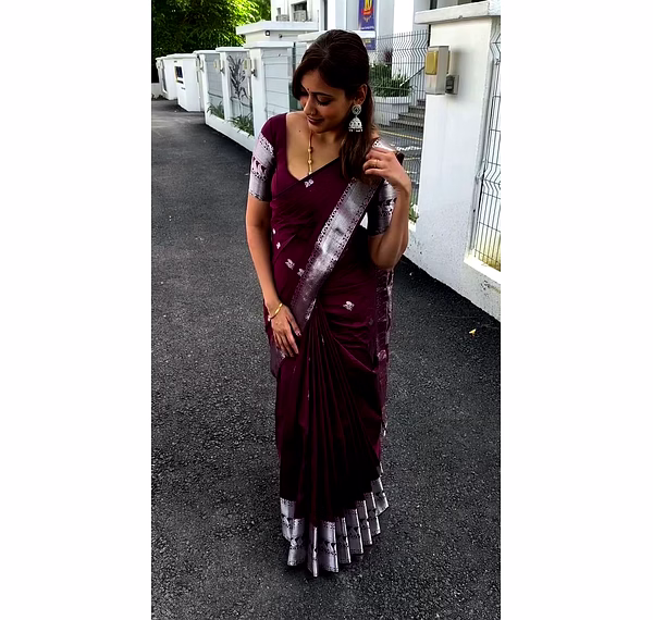 Elevate your ethnic charm with our Wine Berry Lichi Silk Saree. A masterpiece of soft fabric and intricate jacquard patterns, this saree offers a royal drape that transitions effortlessly from morning festivities to evening galas.