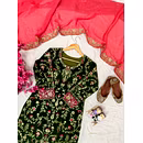 Dress to impress at winter gatherings with our luxurious Winter Special Velvet Embroidery Work Dress for Mehendi, exuding warmth and regal charm.
