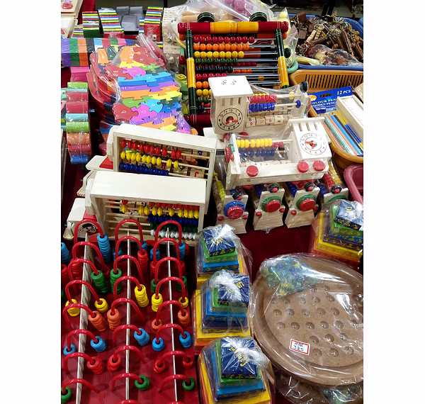 Wooden toys and Handicrafts that are manufactured in the town of Channapatna in the Karnataka state, India. This traditional craft is protected as a geographical indication (GI) under the World Trade Organization, administered by the Government of Karnataka.[1] As a result of the popularity of these toys, Channapatna is known as the (toy-town) of Karnataka. [2] Traditionally, the work involved lacquering the wood of the Wrightia tinctoria tree, [3] colloquially called Aale mara (ivory-wood), Whitewood, Rose wood, Seasam wood, and Teak wood.