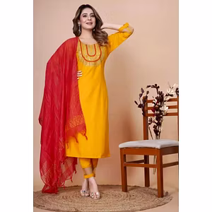 Make a statement with our Yellow Embroidered Rayon Stitched Kurta Set, designed for modern women who appreciate chic elegance. The combination of vibrant yellow color and beautiful embroidery work sets you apart at any occasion.