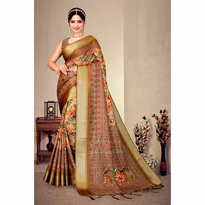 Indulge in the luxurious feel of Georgette fabric adorned with intricate digital prints, adding a modern touch to traditional attire.