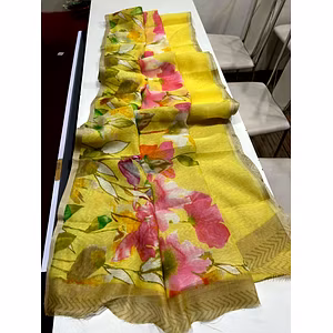 Elevate your style with our Yellow Linen Digital Printed Saree, a perfect blend of elegance and craftsmanship. Made from pure linen with exquisite digital prints, this saree is a statement piece for any occasion.