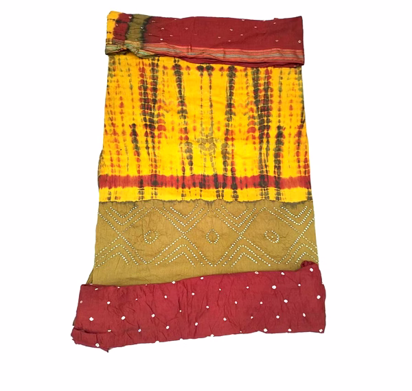 Yellow& Rust Color Cotton Satin Bandhani Dress