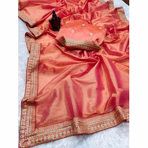 Introducing our exquisite product, a perfect blend of elegance and sophistication. Crafted with utmost care and attention to detail, this piece is truly a masterpiece that will turn heads wherever you go. Made from pure soft tissue zari base fabric, this product is a testament to our commitment to quality. The intricate work of heavy coding sequence lace border adds a touch of glamour and charm, making it a must-have for any special occasion. Not only does this product boast stunning craftsmanship, but it also offers unmatched comfort. The fabric is soft against the skin, allowing you to move with ease and grace. The attention to detail extends to the blouse as well. Made from Bangalori silk, it features intricate butti work that perfectly complements the overall design. What sets this product apart from others is its unique selling points. The heavy coding sequence lace border adds a touch of opulence, making it a standout piece in any crowd. The pure soft tissue zari base fabric adds a regal touch, ensuring that you feel like royalty when you wear it. Whether you're attending a wedding, a festive gathering, or any special event, this product will make you feel like the belle of the ball. With its timeless design and impeccable craftsmanship, it is sure to become a cherished addition to your wardrobe. Don't miss out on the opportunity to own this exquisite piece. Experience the beauty, comfort, and luxury that this product has to offer. Order now and be prepared to make a lasting impression wherever you go.