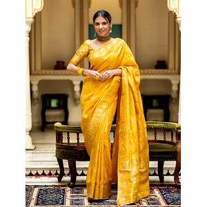 Introducing the Banarasi Handloom TISSUE CRUSHED SILK saree - the perfect blend of elegance and comfort. Each saree is crafted with precision and features an all-over zari weaving body, showcasing the intricate beauty of the Banarasi Handloom. The saree is designed with a perfect zari designer multi-woven border that adds a touch of uniqueness to the outfit. The well-formed beautiful designer pallu adds to the overall charm of the saree, making it an ideal choice for party wear or daily wear. The saree comes pre-attached with a blouse that complements the saree's design and style. The fully zari work adds a touch of glamour, making the wearer stand out in any crowd. The saree's TISSUE CRUSHED SILK material ensures maximum comfort and ease of wear, while the intricate weaving adds a touch of sophistication to the outfit. Our Banarasi Handloom TISSUE CRUSHED SILK saree is perfect for any occasion, be it weddings, formal events, or everyday wear. The saree's unique selling point lies in its attention to detail, intricate weaving, and premium quality TISSUE CRUSHED SILK material. It is a must-have for anyone who wants to make a statement with their elegant and stylish attire. In summary, the Banarasi Handloom TISSUE CRUSHED SILK saree is the perfect blend of style, comfort, and elegance. It is beautifully crafted to highlight the intricate beauty of Banarasi Handloom and is sure to make the wearer stand out in any crowd. The saree is a great investment for anyone who wants to add a touch of sophistication to their wardrobe.