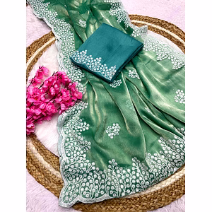 Introducing the Zimmy Choo Saree, a stunning masterpiece that combines exquisite Khatli handwork, dazzling diamonds, and perfect elegance. This saree is a true testament to the craftsmanship and attention to detail that goes into creating each and every piece. The highlight of the Zimmy Choo Saree is the intricate Khatli handwork that adorns its fabric. Meticulously crafted by skilled artisans, the delicate embroidery showcases the rich cultural heritage of India. Every stitch tells a story, adding a touch of tradition and timeless beauty to this elegant saree. Embellished with dazzling diamonds, the Zimmy Choo Saree sparkles and shines with every movement. The carefully placed diamonds catch the light, creating a mesmerizing effect that is sure to turn heads. This luxurious touch adds a touch of glamour and sophistication, making it the perfect choice for special occasions and celebrations. But the Zimmy Choo Saree is not just about its stunning aesthetics. It is designed with the utmost comfort in mind, ensuring that you feel as good as you look. The lightweight fabric drapes effortlessly, allowing you to move with grace and ease. With its perfect balance of style and comfort, this saree is made to make you feel confident and empowered. What sets the Zimmy Choo Saree apart from the rest is its unique ability to capture the essence of elegance. Whether you're attending a wedding, a party, or any other special event, this saree will make you the center of attention. Its timeless beauty and meticulous craftsmanship make it a true work of art. Experience the magic of the Zimmy Choo Saree and embrace the exquisite Khatli handwork, dazzling diamonds, and perfect elegance. Elevate your style and make a statement with this stunning saree that combines tradition and modernity in the most captivating way.